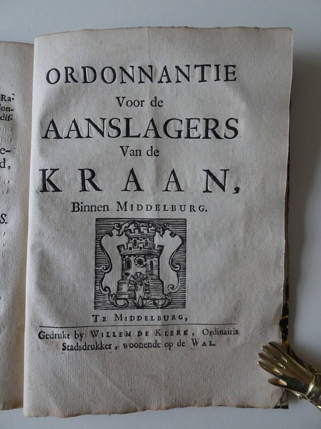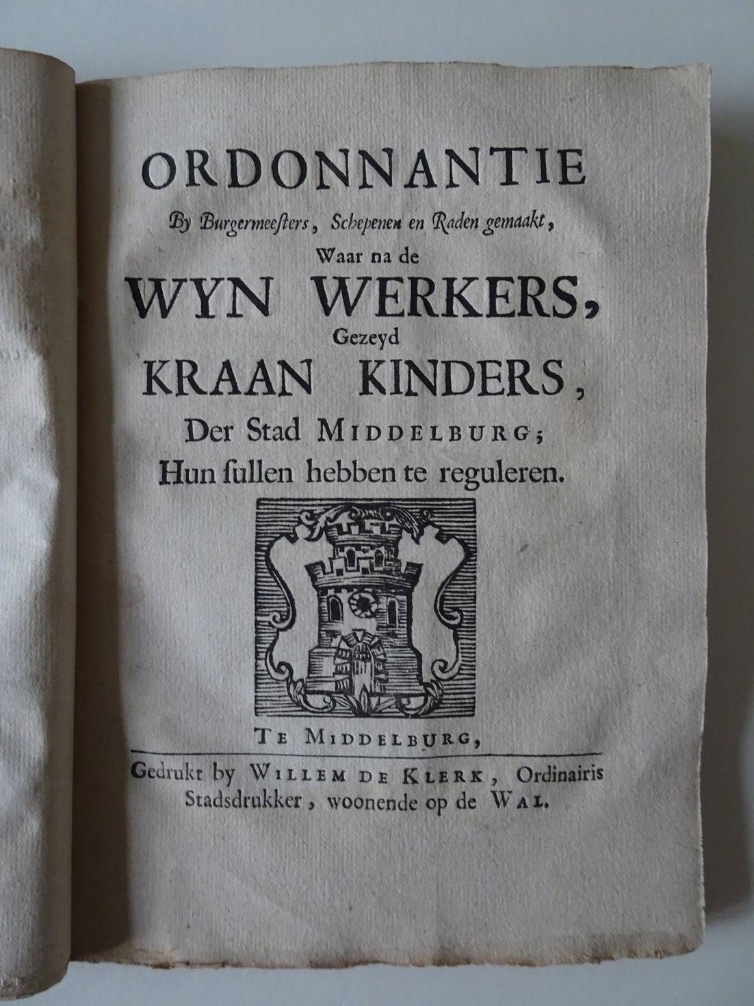 Nieuwe Ordonnantie Gemaakt ende gearresteert by Borgemeesteren, Schepenen en Raden der Stad Middelburg; Wegens het ordinaire Kraanregt, Van alle Kraan Goederen; Item van Kraan Sleden en Kraan Kinders. Middelburg; 1777; Willem de Klerk; 76, 4 en 2 p.