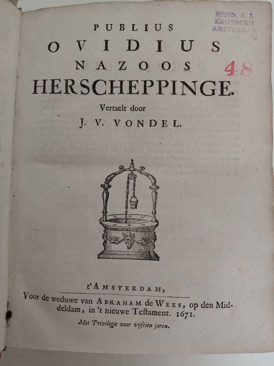 Herscheppinge. Vertaelt door J. v. Vondel.