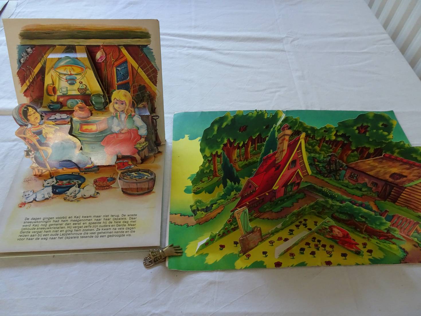 Joure/ Utrecht; zonder jaar; Douwe Egberts; zachte kaft, geniet; verteld door Han Hoekstra en ill. door Joop Geesink; met ingeplakte plaatjes in kleur en pop-ups; 10 p./ De Sneeuwkoninigin heeft geen vermelding van jaar van publicatie of uitgever; het heeft 8 pagina's en de illustraties zijn van de hand van Luce-Andrée Lagarde.