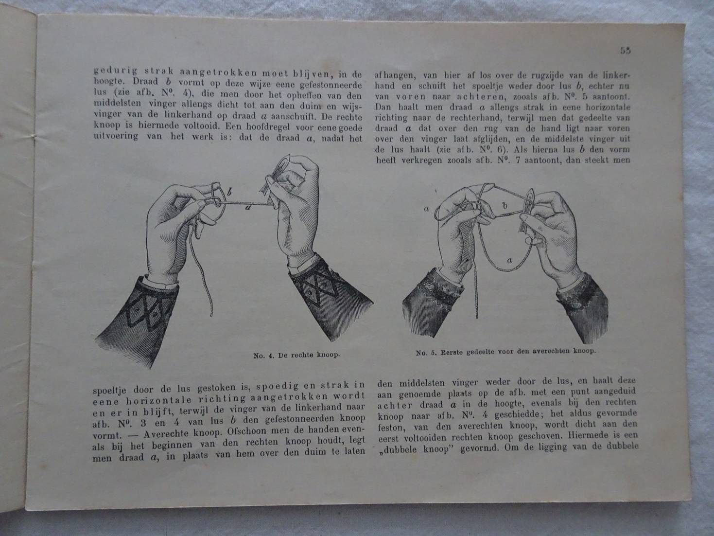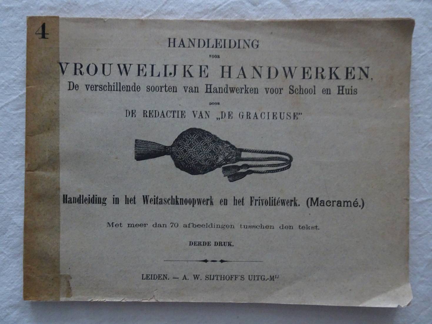 Handleiding voor vrouwelijke handwerken, de verschillende soorten van handwerken voor school en huis, door de redactie van "de Gracieuse". Handleiding in het Weitaschknoopwerk en het Frivolitéwerk (macramé).