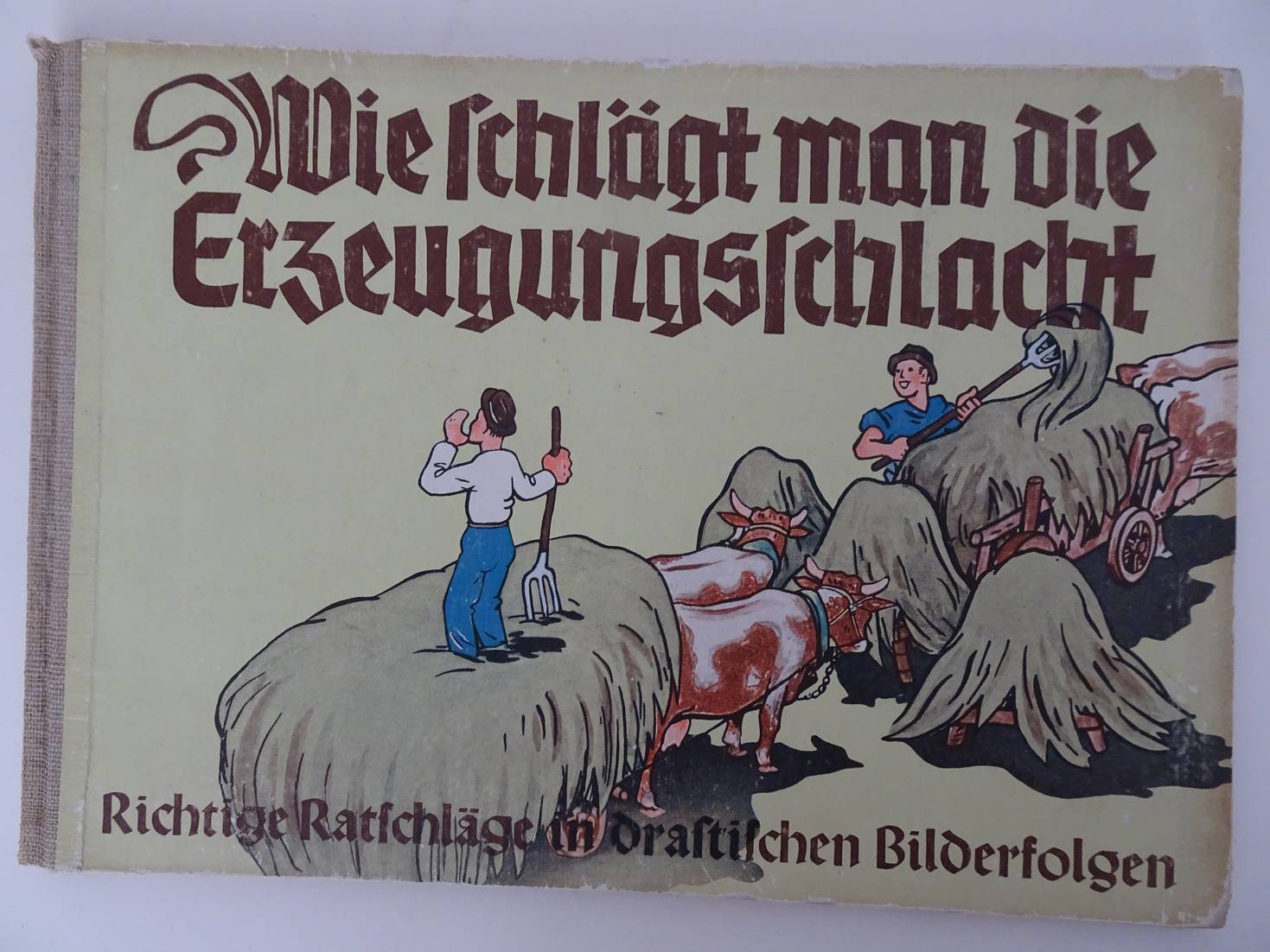 Kleine reparatie op de naad van het boekblok met de band. Achterplat met verticale plooi lopend van boven tot beneden.