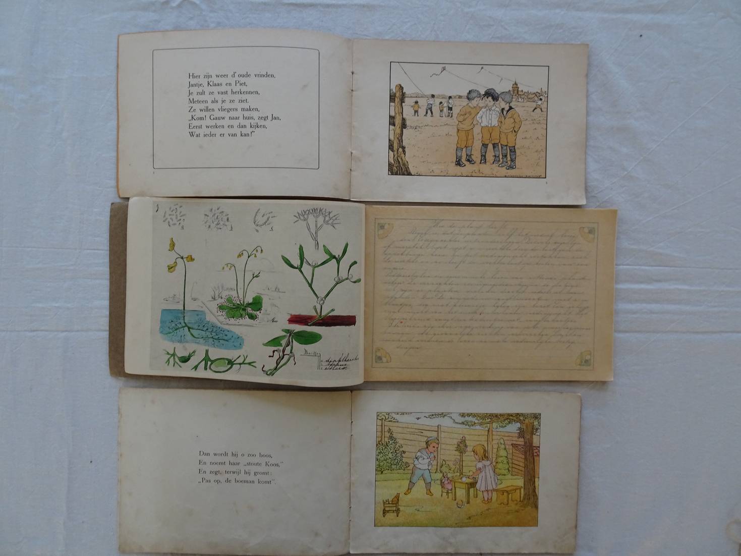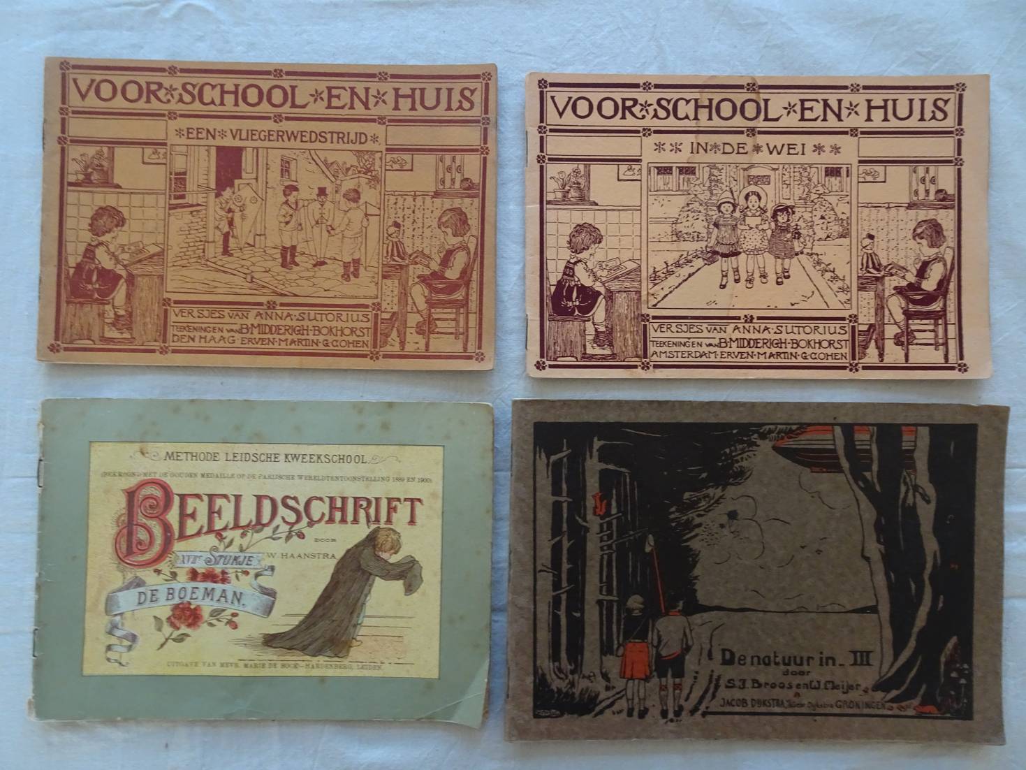 Voor school en huis. In de wei/ Voor school en huis. Een vliegerwedstrijd/ Beeldschrift. XVIIe stukje, de Boeman. Methode Leidsche Kweekschool/ De natuur in- III. 4 titels.