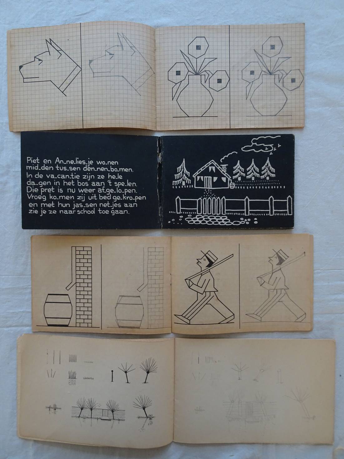 De meeste van de tekenvoorbeelden zijn door de jeugdige lezer nagetekend op de oefenbladzijde.