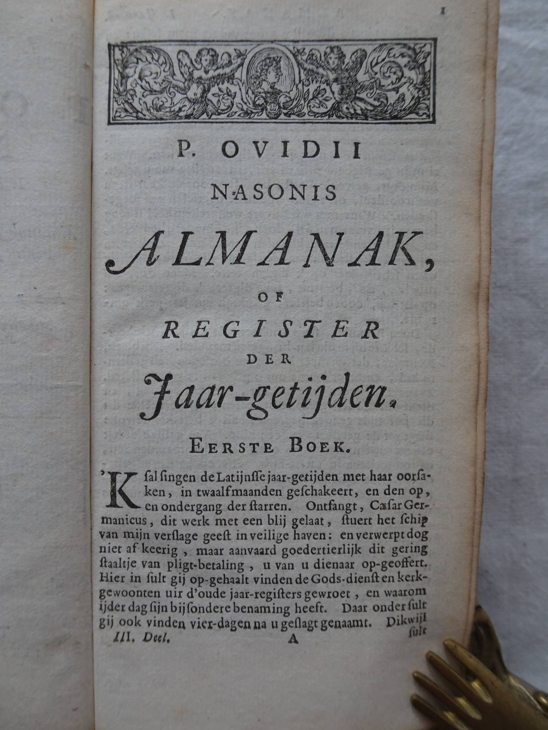 Alle de werken van P. Ovidius Naso. Derde deel. Behelsende sijn Almanak, Klaag-liederen, Droefheid in Pontus, en Troost-digt aan Livia. Vertaalt dor Abraham Valentyn.