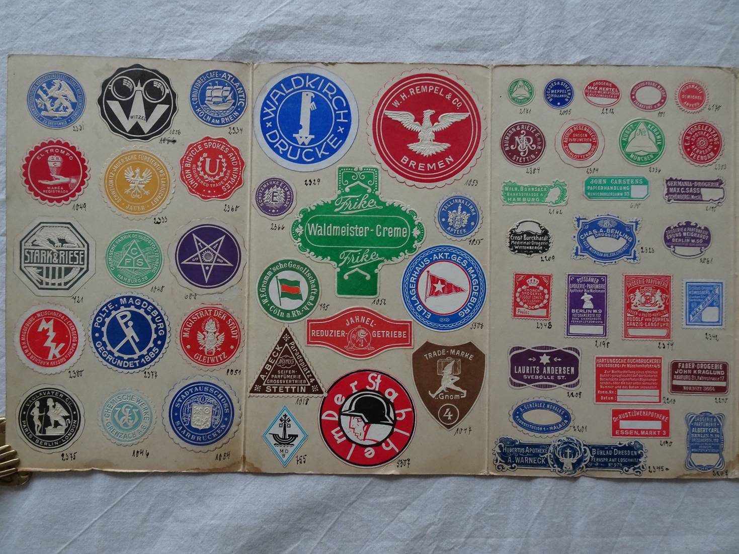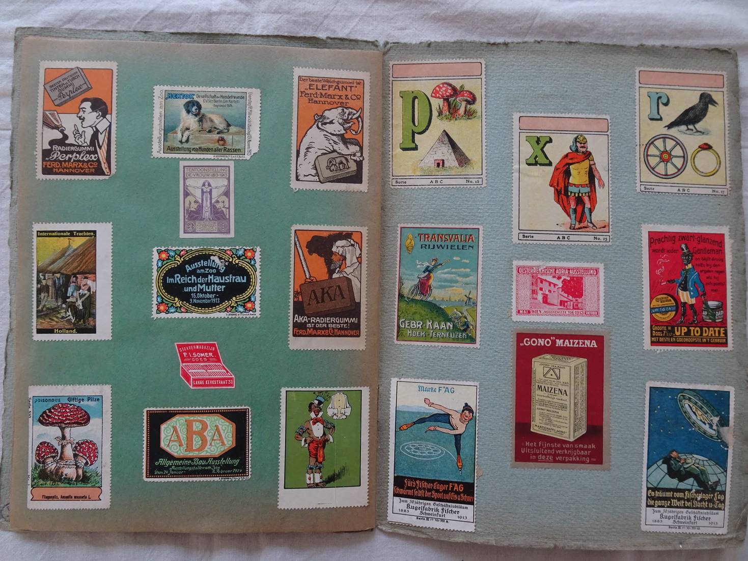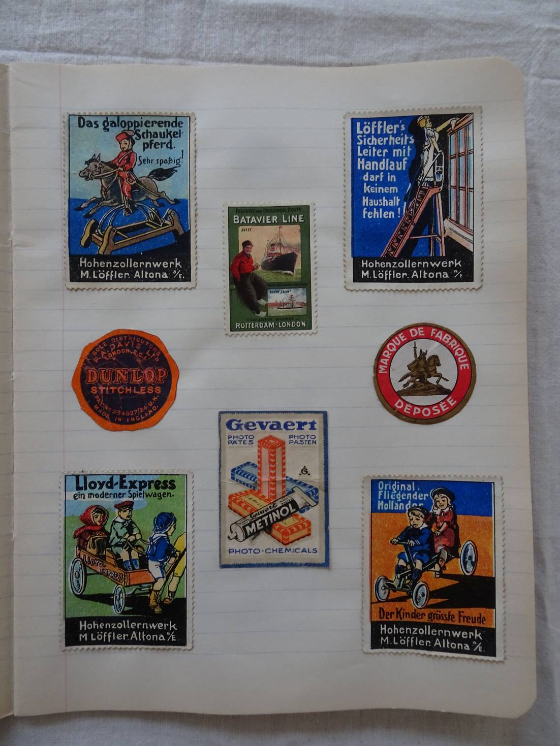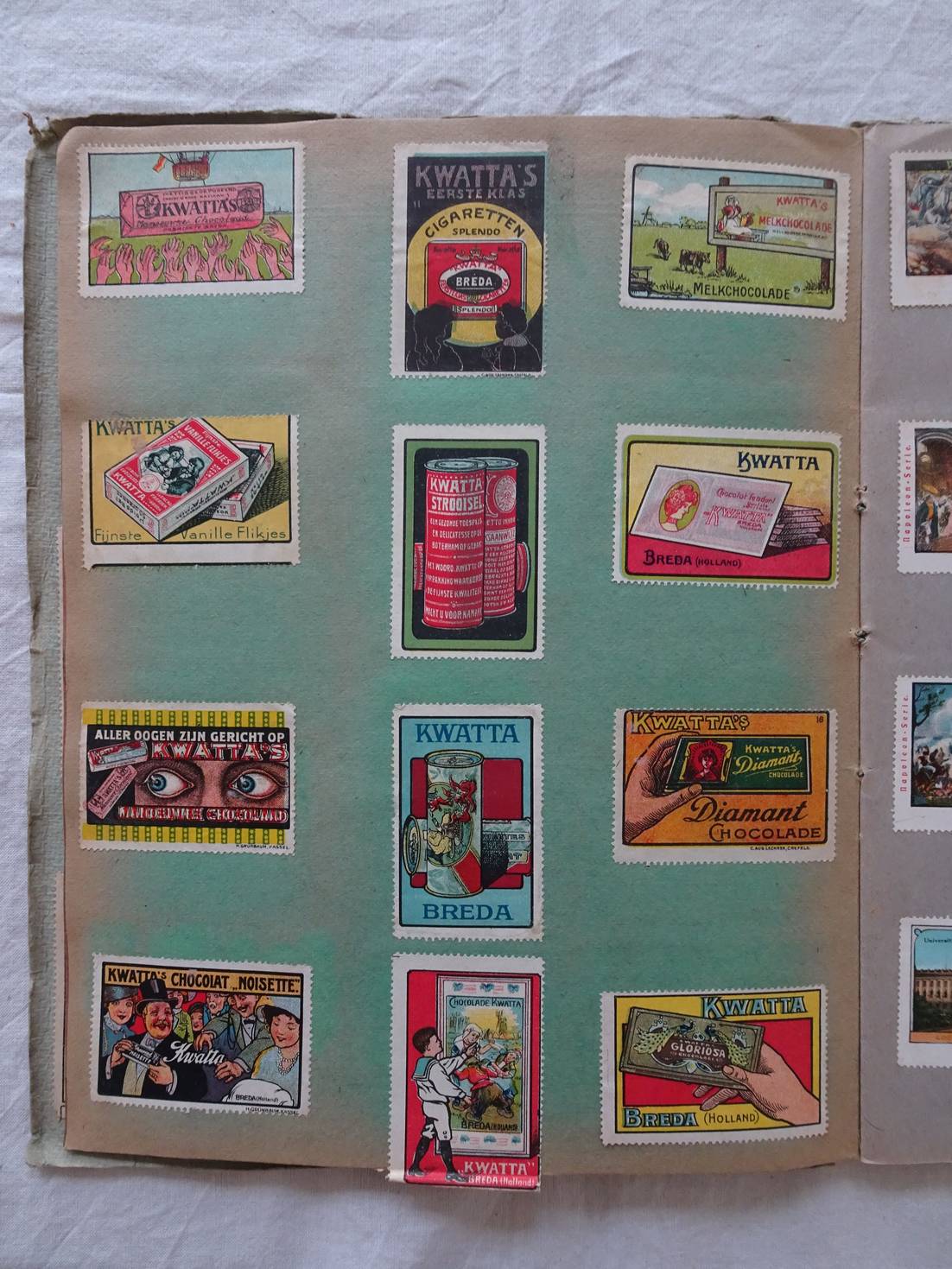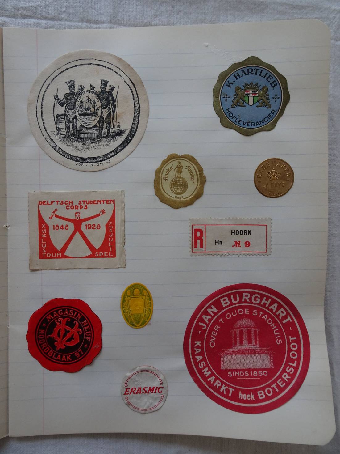 20 Pagina's beplakt met ca. 230 sluitzegels. Het album heeft een stempel van Boekhandel Erven M.D. Dekker Jr. Goes.Zegels dateren van ca. 1910-1925. Geven een fraai beeld weer van toenmalige bedrijven en de manier van reclame maken.