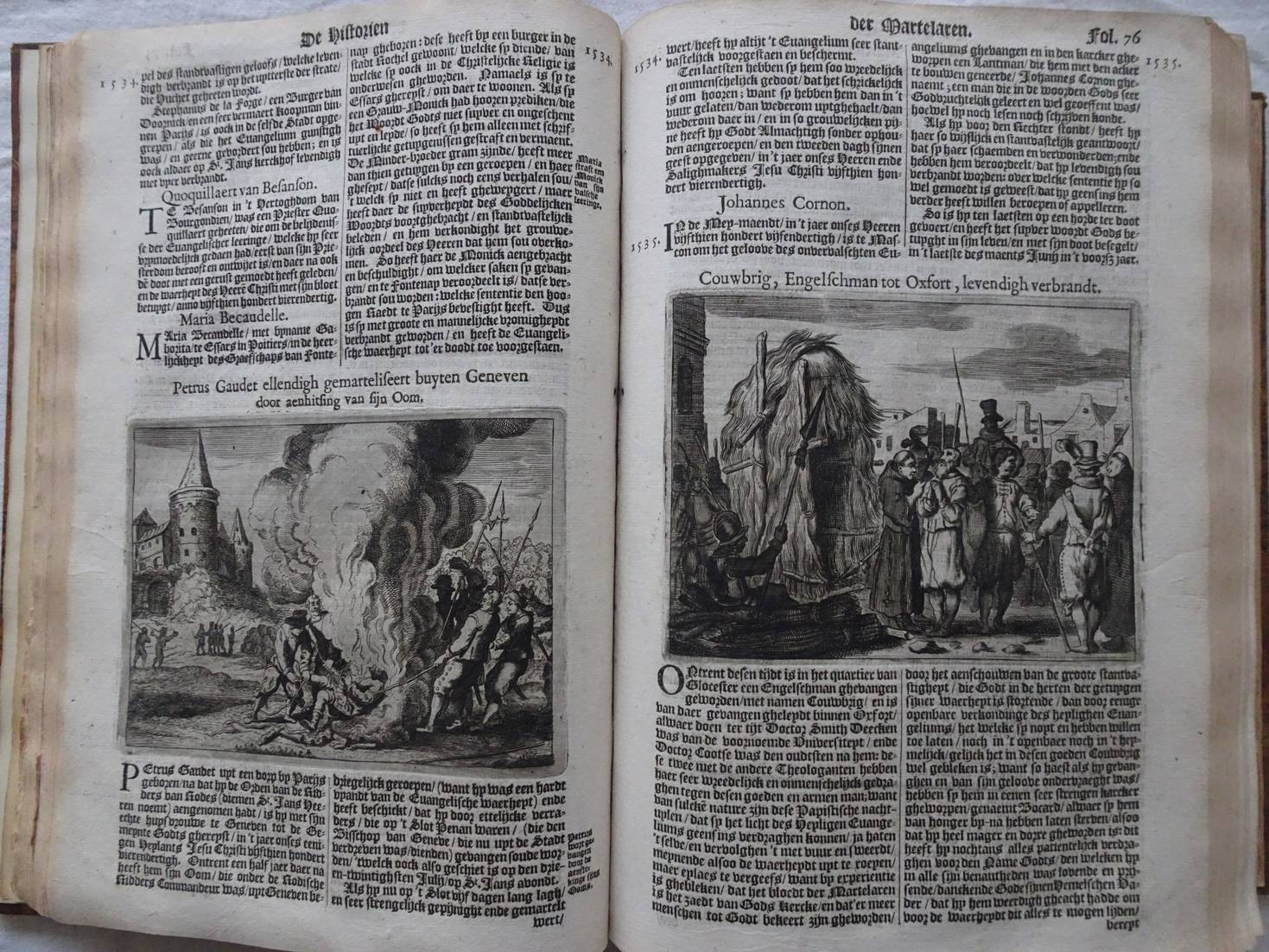 (Historie der Martelaren, Die om het getuygenisse der Evangelischer waerheydt haer bloedt gestort hebben, van de tijden Christi onses Saighmakers af tot den jare sesthien hondert vijf-en-vijftigh toe. Niet alleen in dese Nederlanden, maer oock Vranckrijck, Engelandt, Schotlandt, Spanjen, Italien, Duytschlandt, America en andere Landen, met vele van hare Brieven en Belijdenissen, als mede de Moort van Parijs, de Moort in Voltoline, dongehoorde wreetheyt in Yerlant, mitsgaders de schrickelike Moort aen de Vaudoysen in Piemont, en andere vervolgingen der Geloovigen. In desen laetsten druck op een nieuw neerstelick oversien, verbetert, en veelsins vermeerdert, etc.) (Titelblad ontbreekt!)