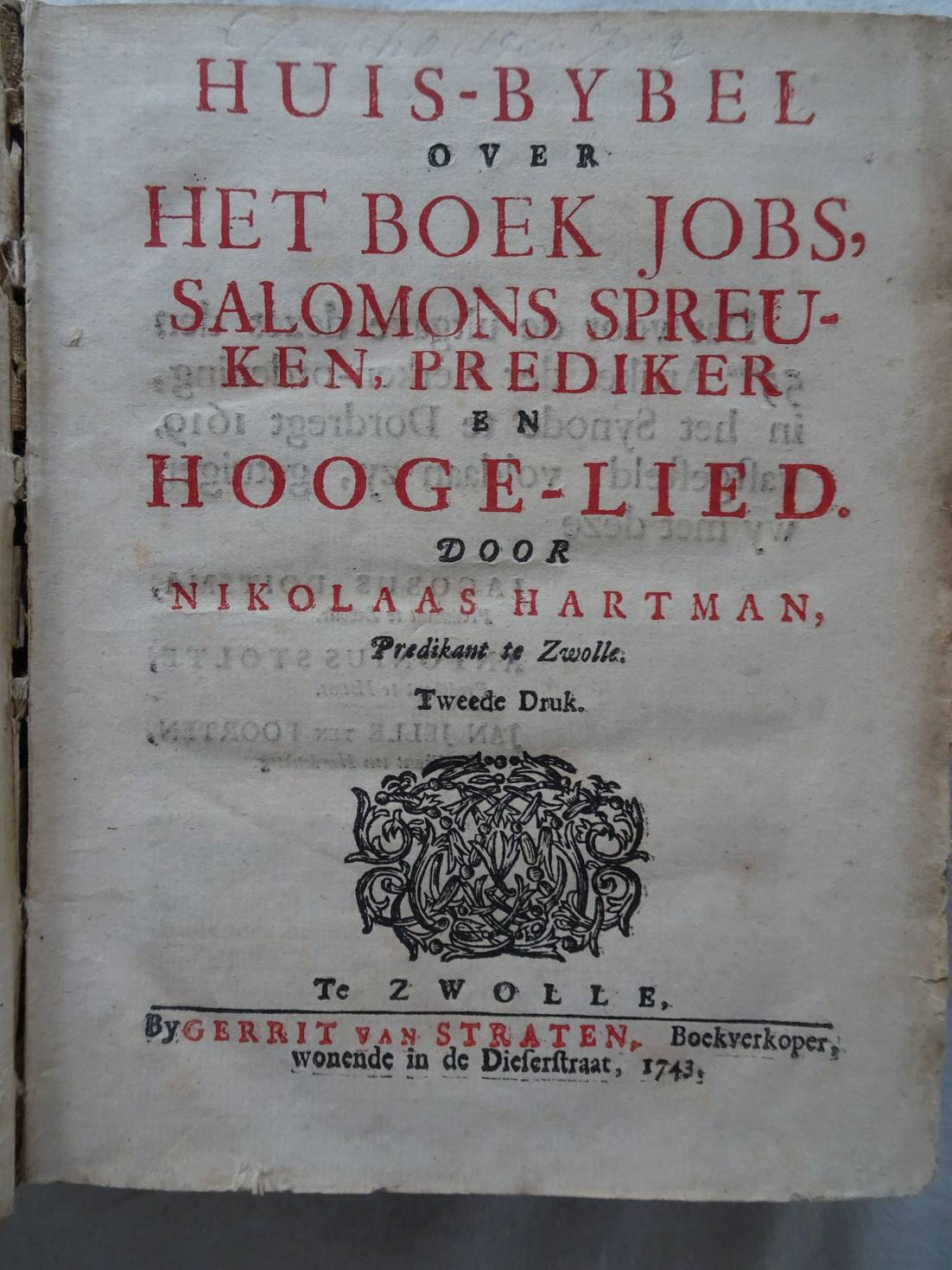 Huis-Bybel over het boek Jobs, Salomons Spreuken, Prediker en Hooge-Lied. Gebonden met: Huis-Bybel over de Propheet Jesaia en: Huis-Bybel over de Propheet Jeremia, ende des zelfs Klaagliederen.