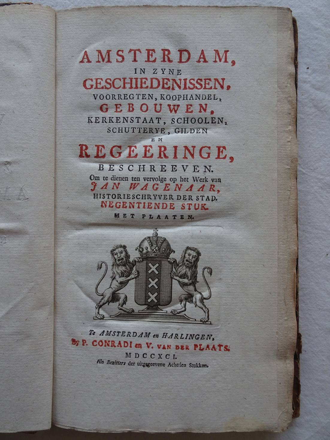 Amsterdam, in zyne geschiedenissen, voorregten, koophandel, gebouwen, kerkenstaat, schoolen, schutterye, gilden en regeeringe, beschreeven. Om te dienen ten vervolge op het werk van Jan Wagenaar. Negentiende stuk.