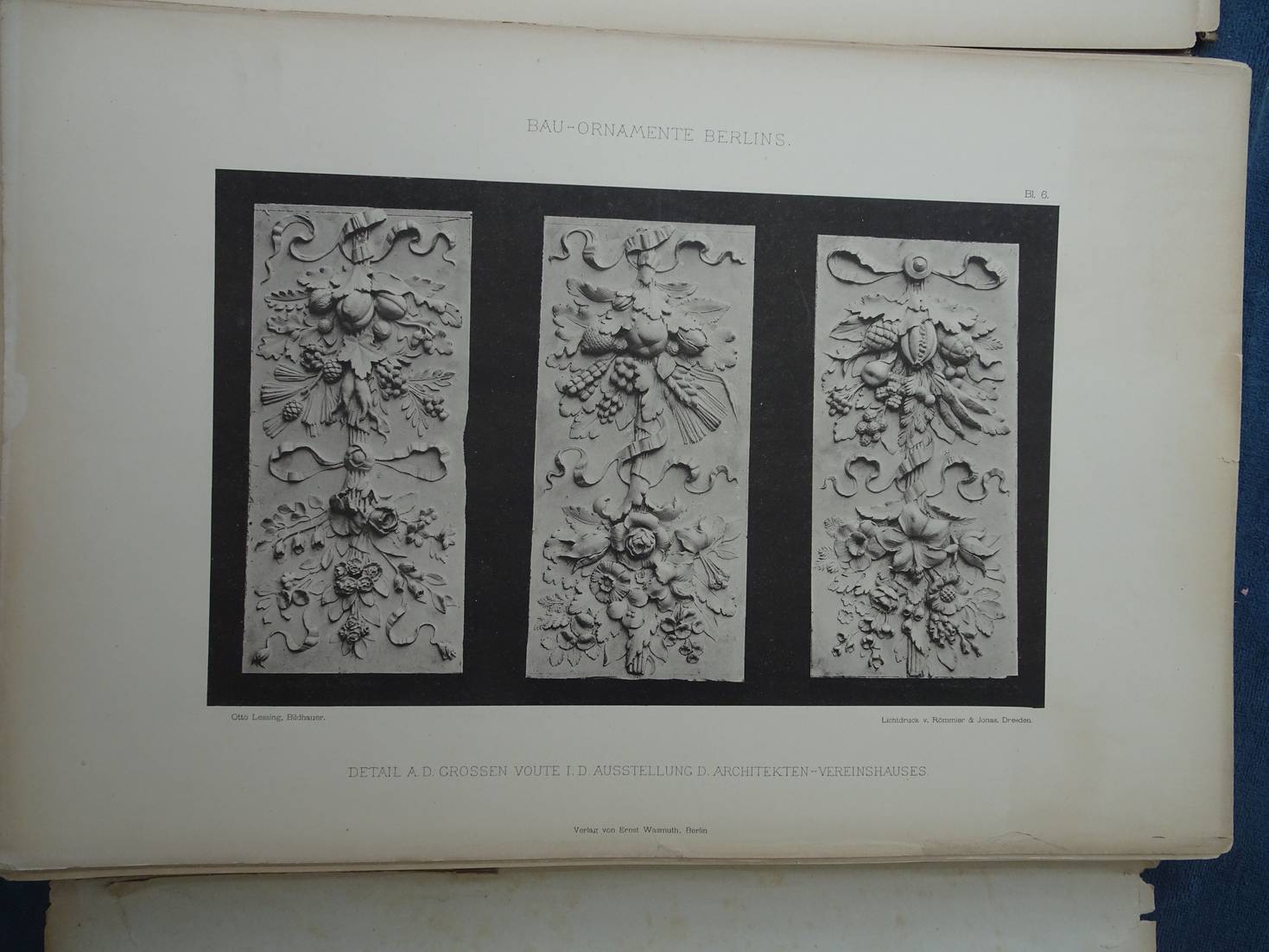 Ausgeführte Bauornamente Berlins. Sammlung hervorragender Ornamentausführungen der bedeutendsten Architekten, Bildhauer und Maler Berlins.