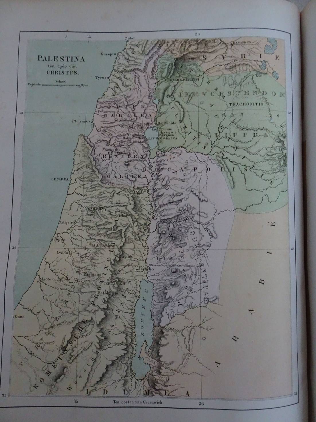 Leiden; zonder datum (ca. 1880); A.W. Sijthoff. Klein folio (31,5 x 25 cm); Leder met 8 koperen hoekstukken en 2 sluitingen. Met diverse kleuren-litho's en kaarten; (6) 956, 338 p.