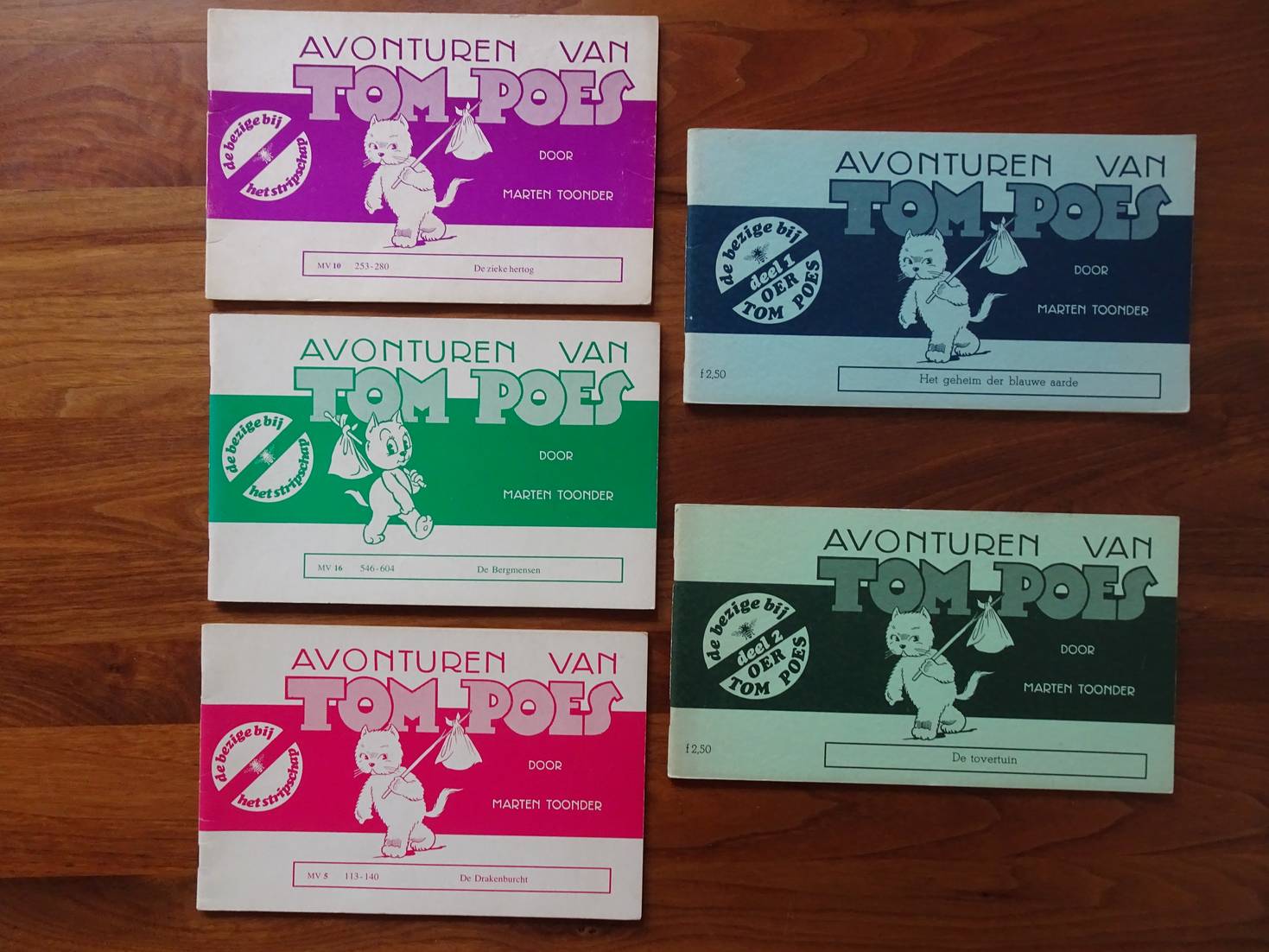 Avonturen van Tom Poes. Het geheim der blauwe aarde, deel 1 "Oer Tom Poes"/ De tovertuin, deel 2 "Oer Tom Poes"/ De Drakenburcht (MV 5, 113-140)/ De zieke hertog (MV 10, 253-280)/ De Bergmensen (MV 16, 546-604). 5 deeltjes.