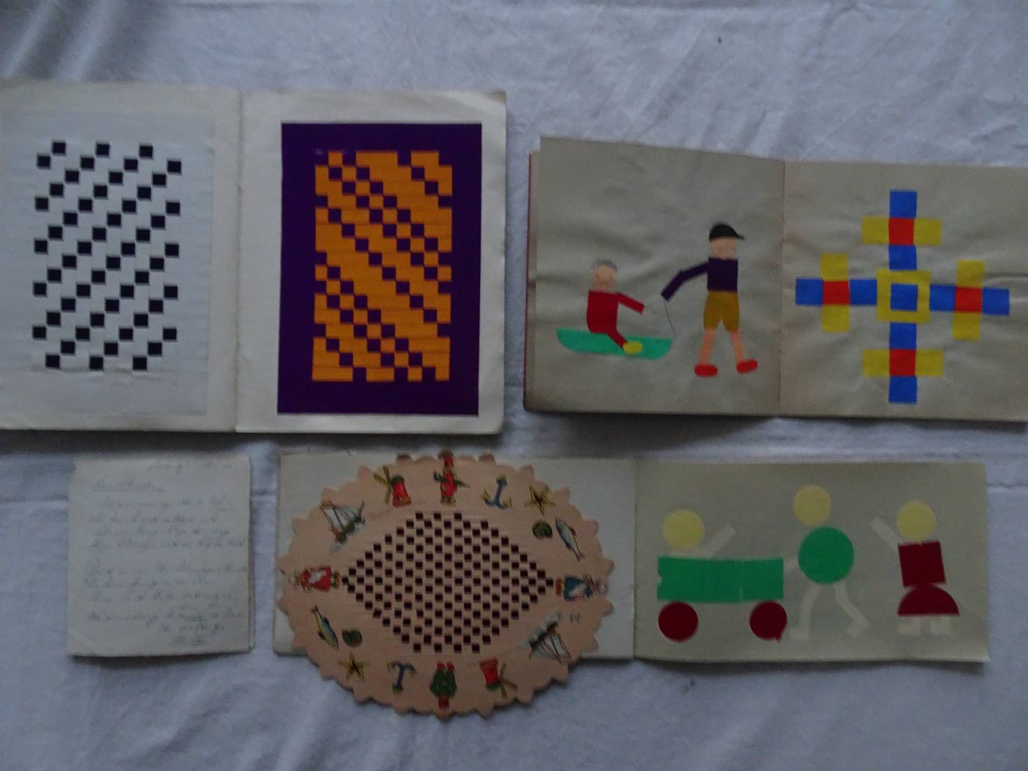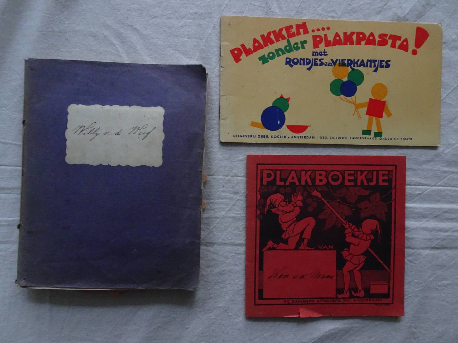 Plakboekje/ Plakken zonder plakpasta met rondjes en vierkantjes/ Zonder titel (schriftje met handwerk voorbeelden). 3 titels.