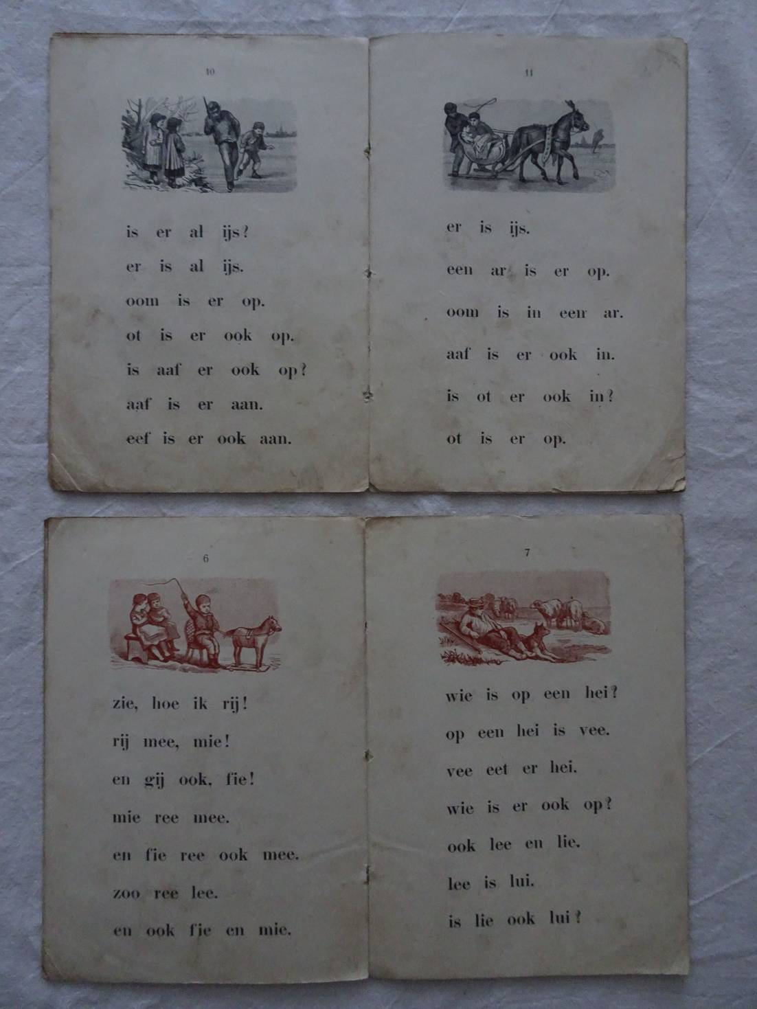Leiden; z.j. (ca. 1890); uitgave van L. Hardenberg; zachte kaft; gelithogr. prentjes in kleur; uit de reeks "Methode Leidsche Kweekschool", bekroond met de gouden medaille op de Parijse wereldtentoonstelling van 1889; n.p.