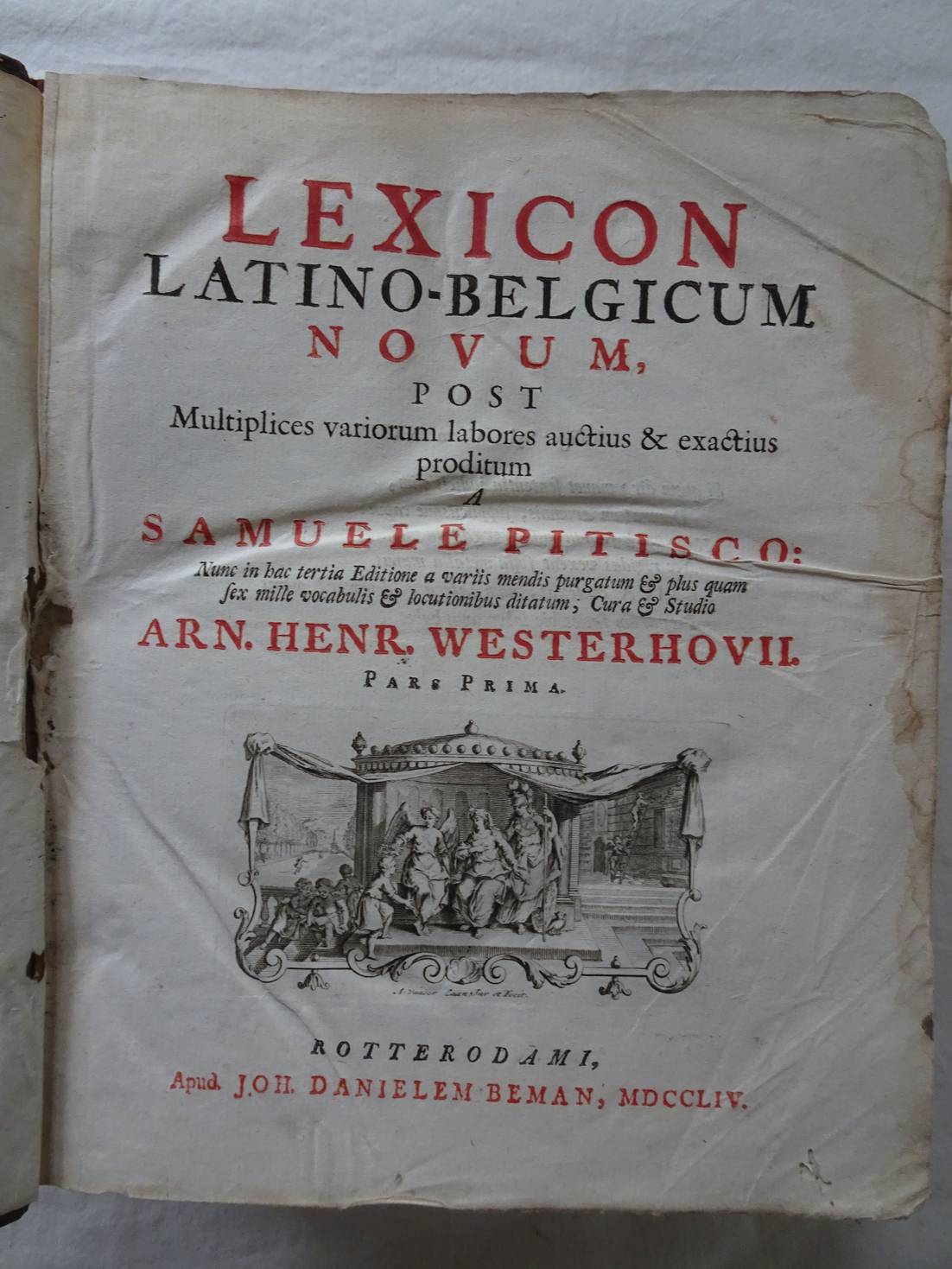 Lexicon Latino-Belgicum novum, post multiplices variorum labores auctius & exactius proditum a Samuele Pitisco. Nunc in hac tertia editione a variis mendis purgatum & plus quam sex mille vocabulis & locutionibus ditatum, cura & studio Arn. Henr. Westerhovii.