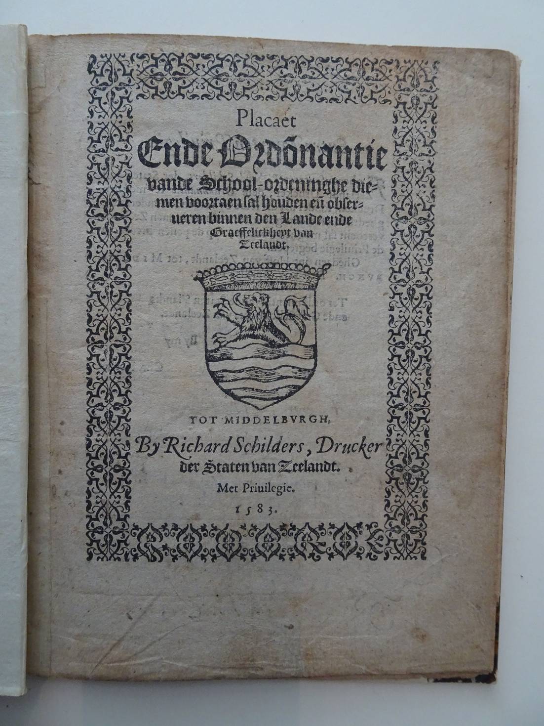Placaet ende Ordonantie vande School-ordeninge diemen voortaen sal houden en observeren binnen den Lande ende Graeffelickheyt van Zeelandt.