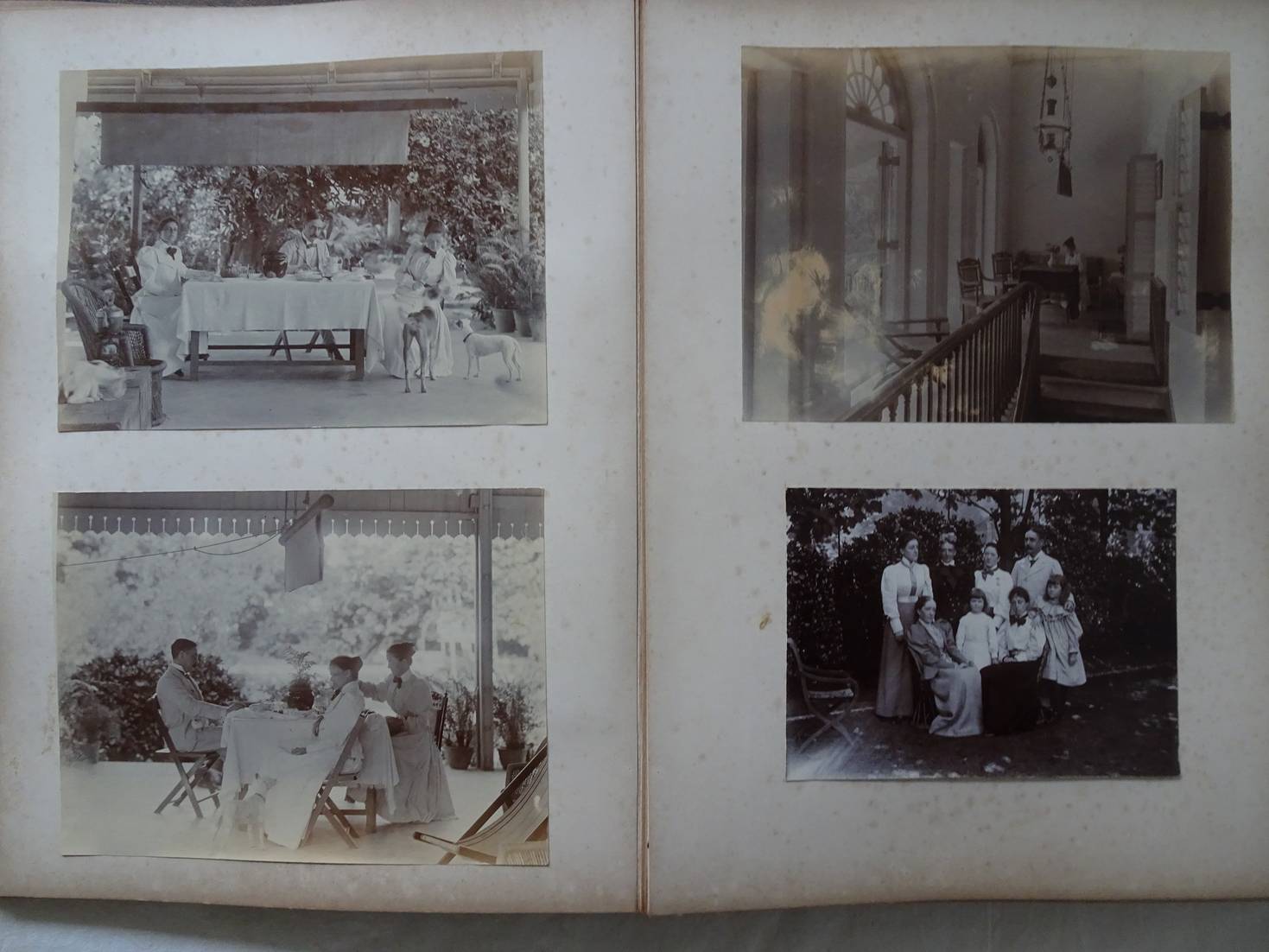 Zonder plaats; zonder jaar (ca. 1920); halflinnen; ca. 29x 37,5 cm.; gevuld met ca. 100 ingeplakte zwart wit foto's, diverse afmetingen, kleinere en grotere; van personen, landschappen en monumenten; foto's van o.a. Sint Nicolaas, Vlissingen, Groot-Brittannië, Zwitserland en familiefoto's; het boek telt ook enkele blanco pagina's.